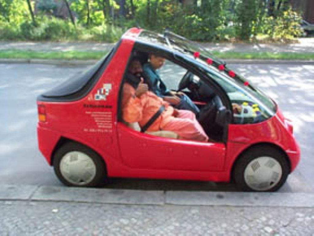 Sri Swamiji im Hotzenblitz, einem der ersten Elektroautos